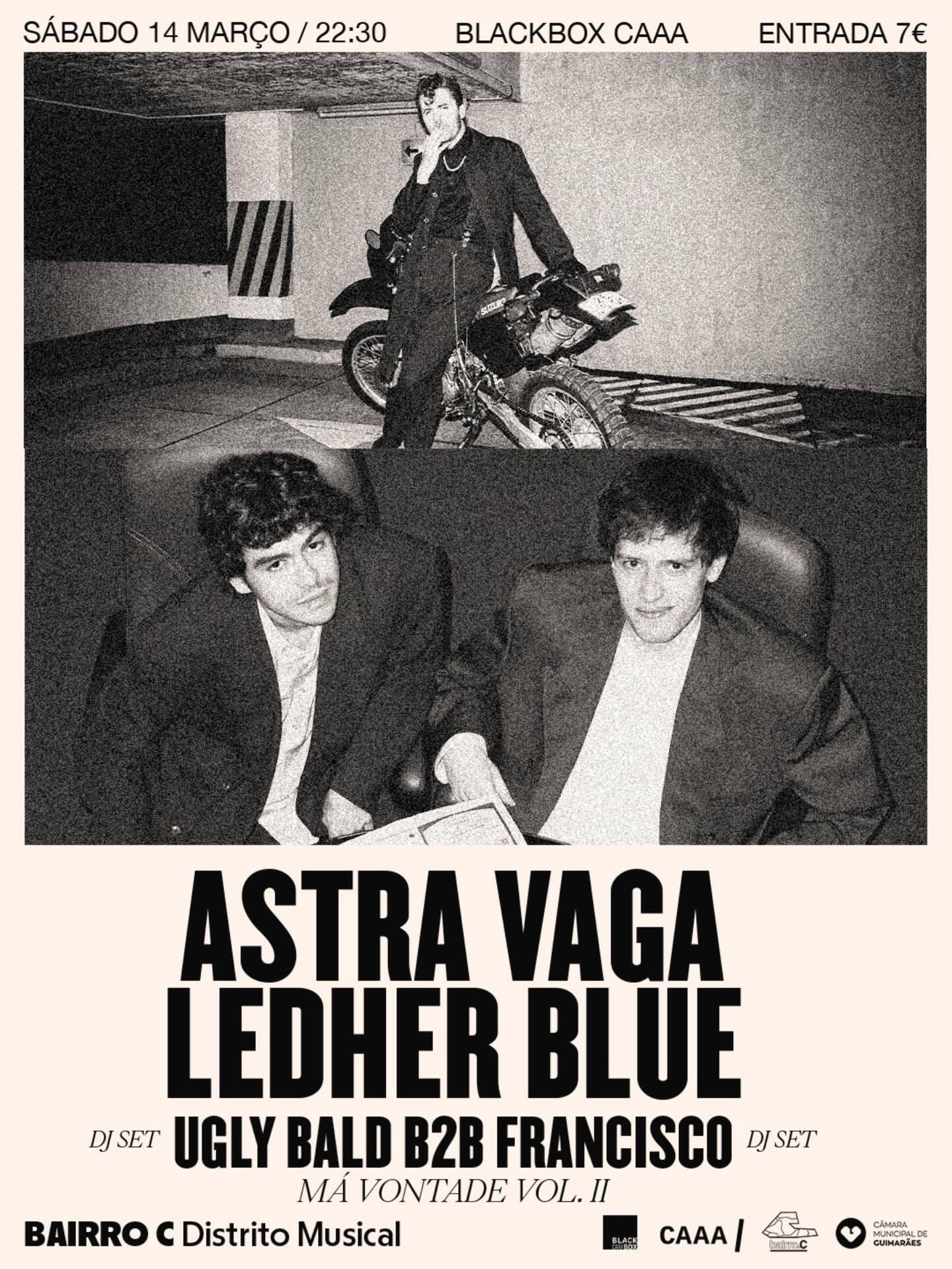 Sábado, 14 de Março iremos receber Astra Vaga , Ledher Blue. Esta noite também será de celebração de 2º aniversário do MÁ VONTADE seguindo-se de um after com Dj set de Ugly Bald b2b Francisco!