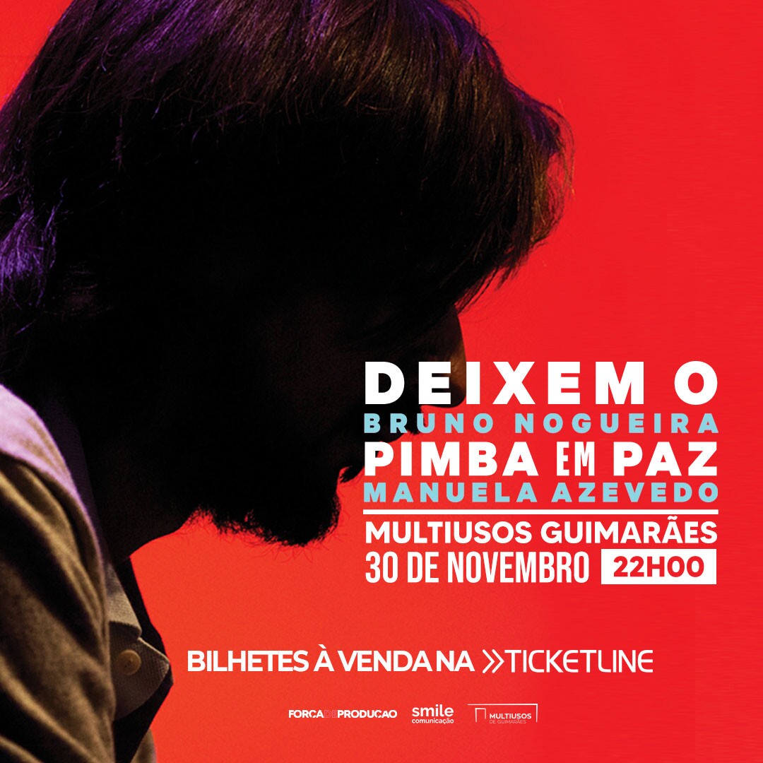 Deixem o Pimba em Paz” é um daqueles casos raros de sucesso e de muita descontração. Nascido do fascínio de Bruno Nogueira pelo pimba, este espetáculo explora as letras, músicas, roupas e coreografias deste universo e dá nova vida às canções através da vocalista dos Clã, Manuela Azevedo. “Deixem o Pimba em Paz é um concerto e um espectáculo de desconstrução. E já não é pouco!