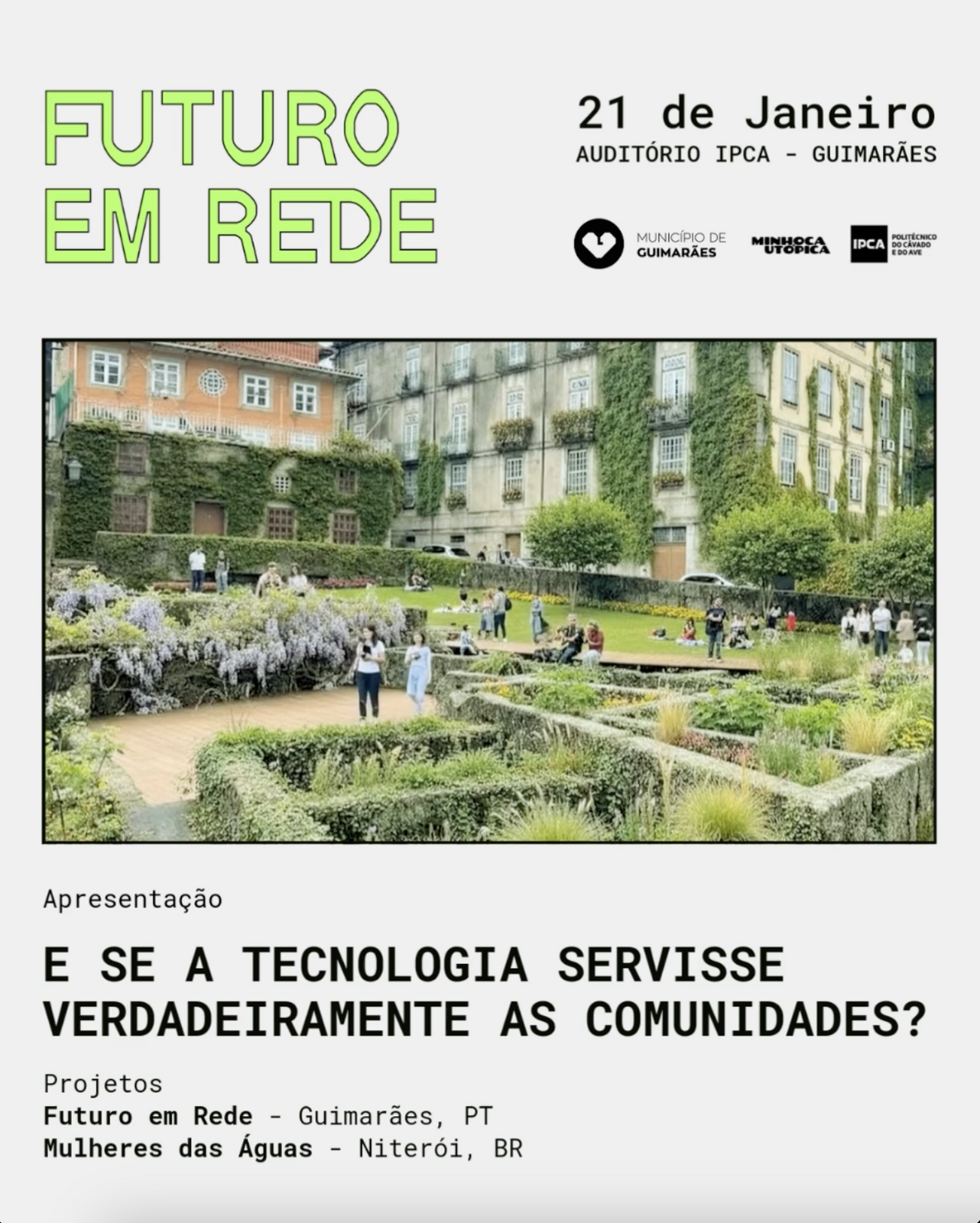 Nota: Este é o primeiro evento do Futuro em Rede, projeto que acontece no âmbito da Guimarães Capital Verde Europeia 2026 e que vai estar ativo no Bairro C nos próximos meses com atividades abertas à comunidade. Vem imaginar o futuro com a gente?