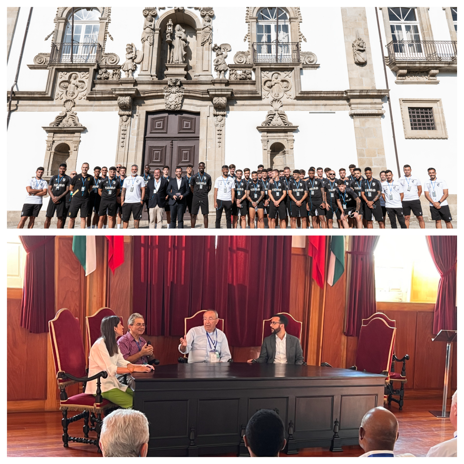 Esta visita começou com a descida no Teleférico e depois o Plantel, bem como a estrutura que o estará a acompanhar, seguiram a pé até ao Castelo e ao Paço dos Duques de Bragança, onde realizaram visita e terminaram com descida pelas ruas e praças do cento Histórico, tendo sido recebidos pelo Vereador do Turismo no Largo Cónego José Maria Gomes. A visita terminou no Largo do Toural.