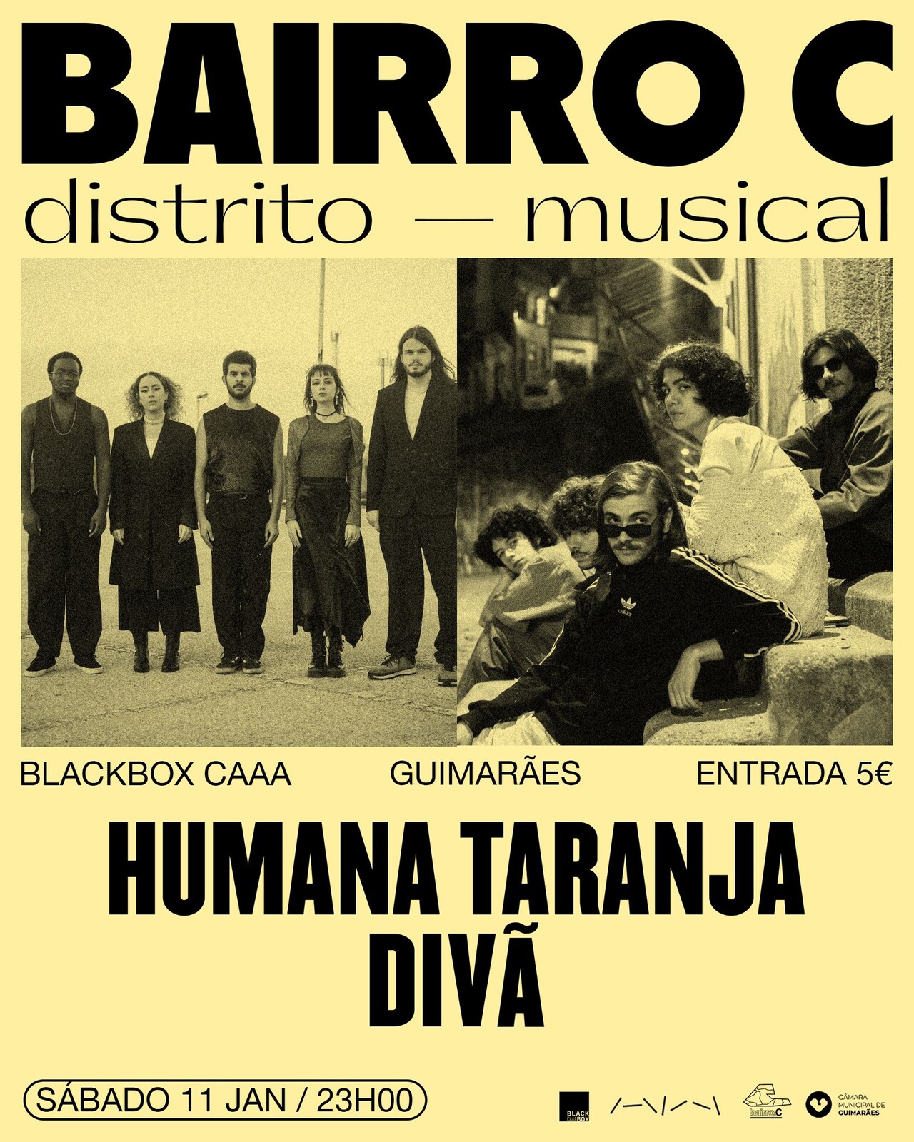 HUMANA TARANJA aconteceram por acaso e mantiveram-se de propósito. Existem entre pop melódico e rock emotivo, no meio de uma sonoridade quase palpável que se agiganta com os nervos à flor da pele. Estrearam-se ao vivo, em 2018, na última edição do festival Barreiro Rocks. Em 2020, lançaram o EP Quase Vivos, que atravessou a fronteira e ocupou a 26ª posição na lista dos 50 Melhores Discos Portugueses de 2020, segundo a Mindies. Em 2021 tocaram no Festival Emergente e no Festival Termómetro. Em 2023 surge o primeiro longa-duração da banda, intitulado ZAFIRA - uma história narrada em tom de música, salpicado de cor, mas também coberto por uma distorção aguçada que dá o salto para aquilo que vem depois. EUDAEMONIA é o segundo longa duração da banda e chegou a todas as plataformas dia 14 de outubro de 2024. DIVÃ são uma banda sediada na Amadora, que conta com dois gajos de Matosinhos (Salvador e Nery), um de Almada (Milho), um puto de Carcavelos (Francisco) e uma senhora de Mafamude (Mafalda). Em 2024 lançaram o seu EP de estreia “Filho Prodígio”.