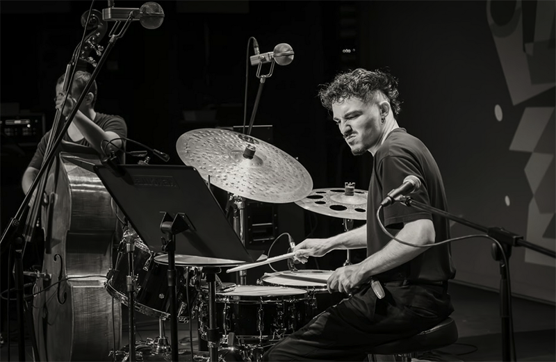 Em 2025, a 5ª edição do CIJ distinguiu o Hugo Santos 5tet com os prémios de Melhor Ensemble, Melhor Composição Original e Melhor Arranjo Original. Liderado pelo seu baterista e composto por um conjunto de músicos – Duarte Júlio, Simão Raimundo, Rafael Oliveira e Pedro Miranda – formados, ou ainda em processo de formação, em jazz pela ESMAE, este ensemble pratica um jazz pulsante e elétrico que, apesar das suas sólidas fundações jazzísticas, remete para um som no qual se detetam as influências do rock e do funk. Com este gesto de exposição de músicos emergentes, o Guimarães Jazz cumpre um dos seus objetivos de encorajamento à criação do jazz em Portugal, ao mesmo tempo que permite ao público do festival um vislumbre das tendências estéticas exploradas pelos mais novos protagonistas desta música. A avaliar pelas edições anteriores e pela formação que apresentamos nesta edição do festival, torna-se notório que estamos perante uma geração de músicos que, talvez pelo facto de terem crescido numa altura em que o acesso à música é praticamente ilimitado, absorvem de uma forma natural, eventualmente mais natural do que no passado, uma pluralidade de referências musicais. Essa circunstância parece antecipar uma propensão para a diluição das fronteiras entre géneros e apontar para uma nova paisagem jazzística mais claramente pluridiomática. Se será esse o devir do jazz, a resposta caberá aos jovens músicos como estes que compõe o Hugo Santos 5tet e, claro, àqueles dispostos a ouvi-lo com a atenção necessária.