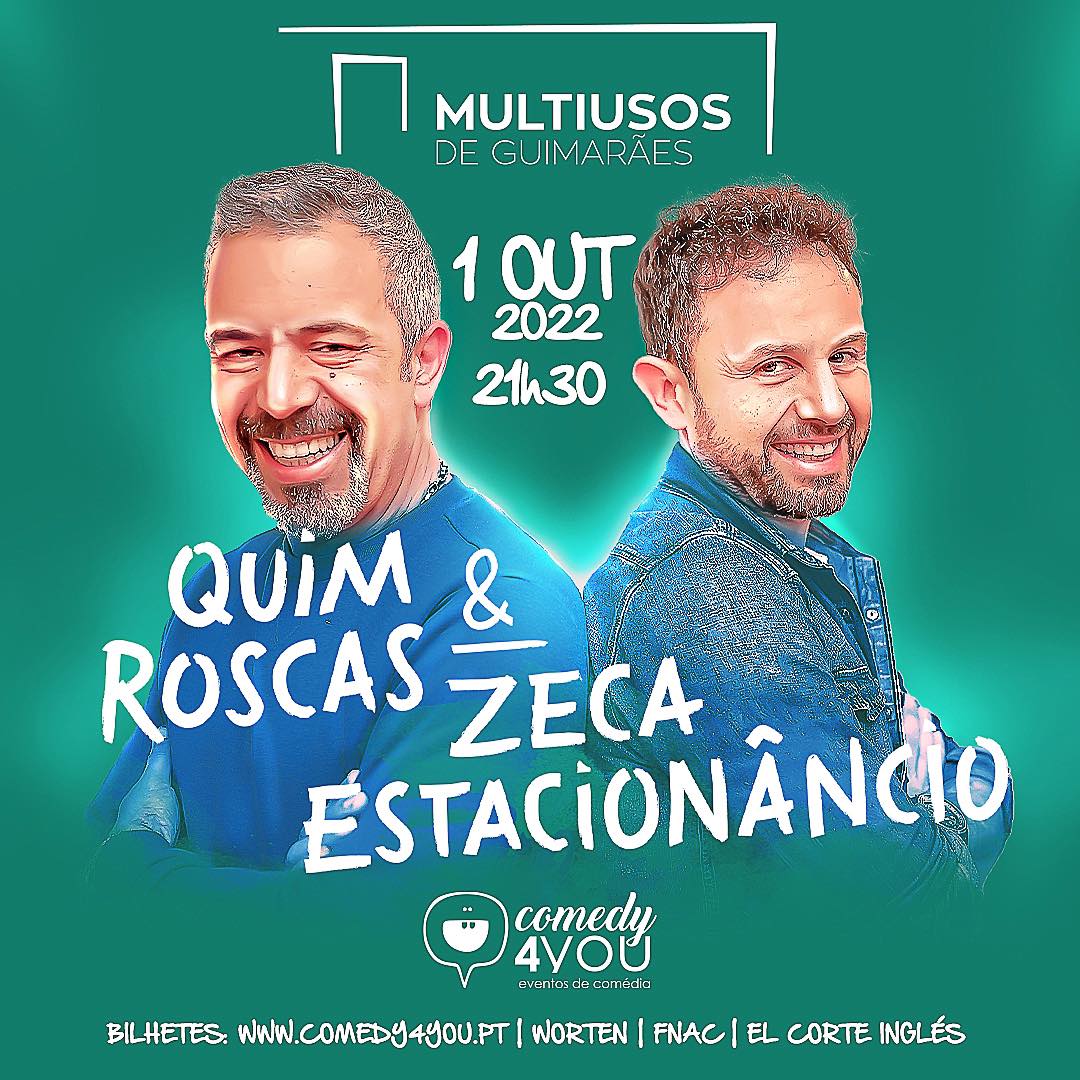 Com um grande sentido de humor, Quim Roscas & Zeca Estacionâncio levam a palco um espetáculo hilariante onde não falta comédia, música, improviso e muita estupidez. Milhares de espetáculos realizados durante 20 anos de carreira com muitas gargalhadas, fazem com que João Paulo Rodrigues e Pedro Alves sejam, sem sombra de dúvidas, a dupla de humoristas de maior sucesso em Portugal.