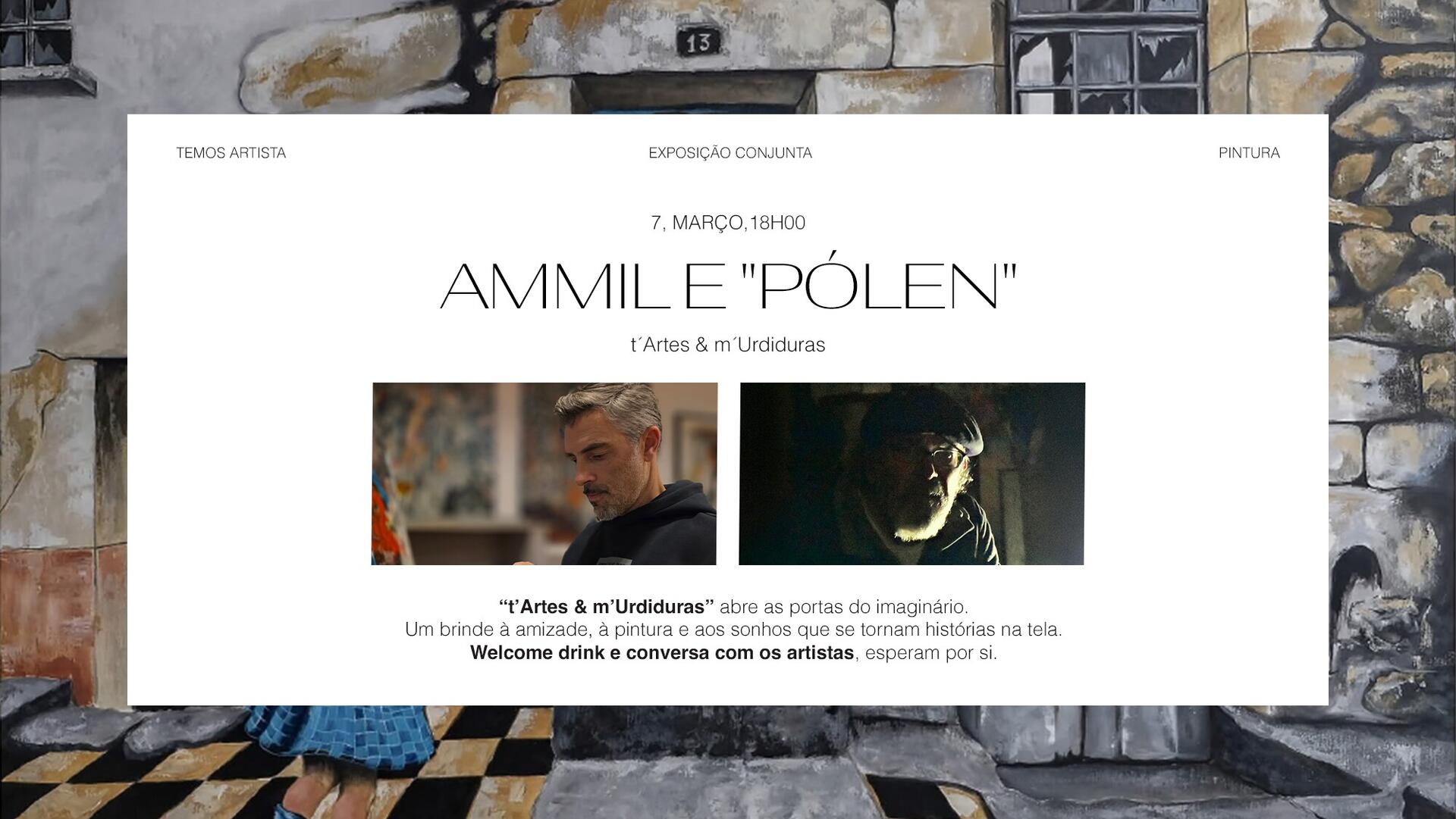 A próxima exposição do "Temos Artista" recebe uma exposição conjunta dos artistas Ammil e Pólen. Esta inauguração será marcada por um momento inédito de pintura ao vivo por parte dos artistas.